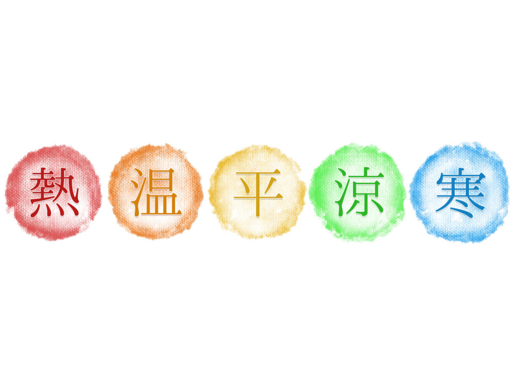 食物が「熱性」「温性」「平性」「涼性」「寒性」のどれに当てはまるか