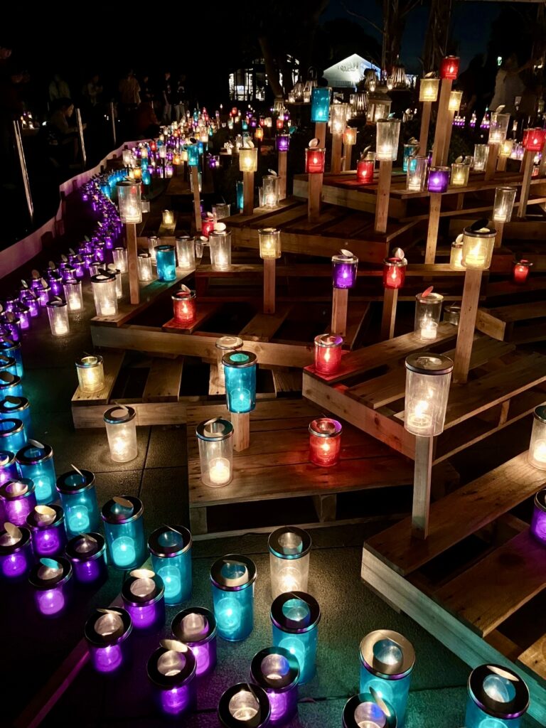 約10,000基ものキャンドルを毎日灯すのに沢山のボランティアさんが協力してくれていますし、海風や雨などの気象条件にも影響を受けやすいイベントだからでしょうか😌