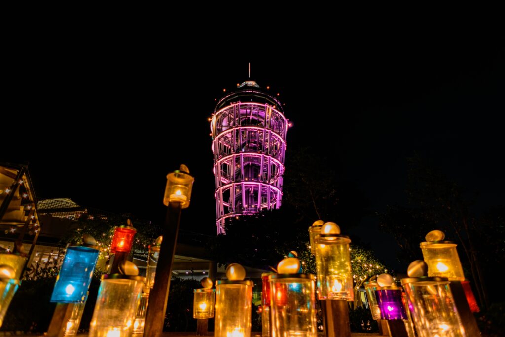 主な開催場所の「江の島サムエル・コッキング苑」で、キャンドルが点灯するのは夜間営業時間内です。