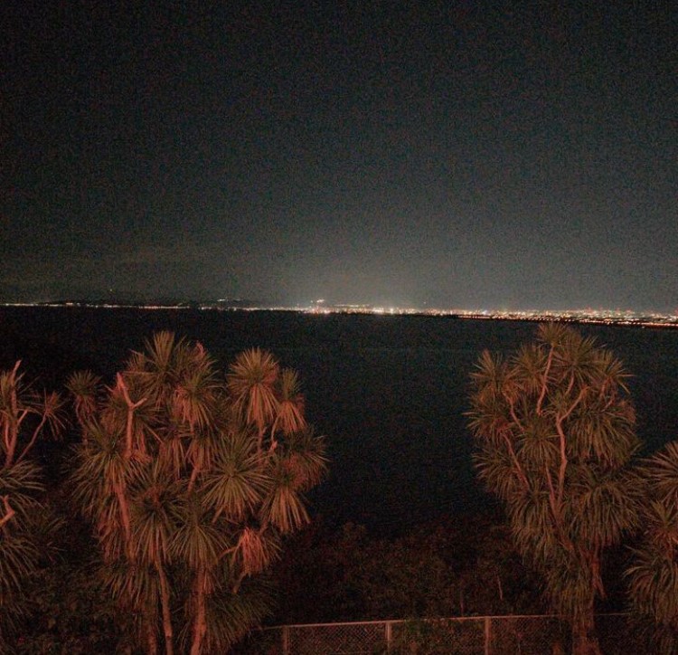 飲み込まれそうな暗い海とは対照的に、空には月と星が明るく輝き、眼下には人々の活気ある街並みが広がります。まるで、陰と陽のエネルギーを同時に捉えているようでした☯