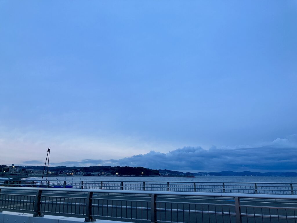 江の島弁天橋から見た夜明けの空