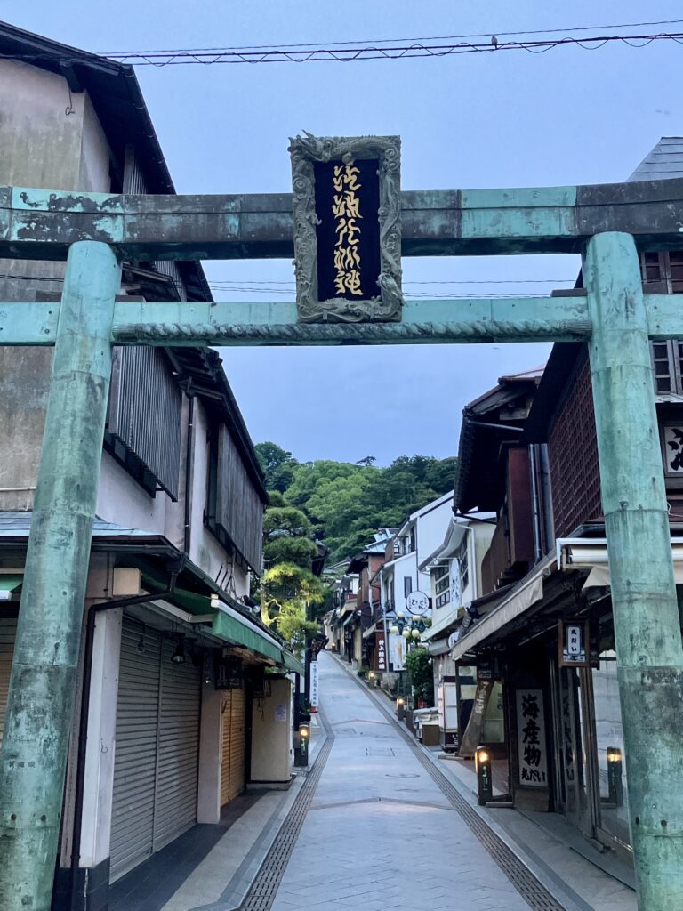 昼間は多くの観光客で賑わいますが、夜明けの参道は静寂に包まれ、まるで神様の通り道のようでした。