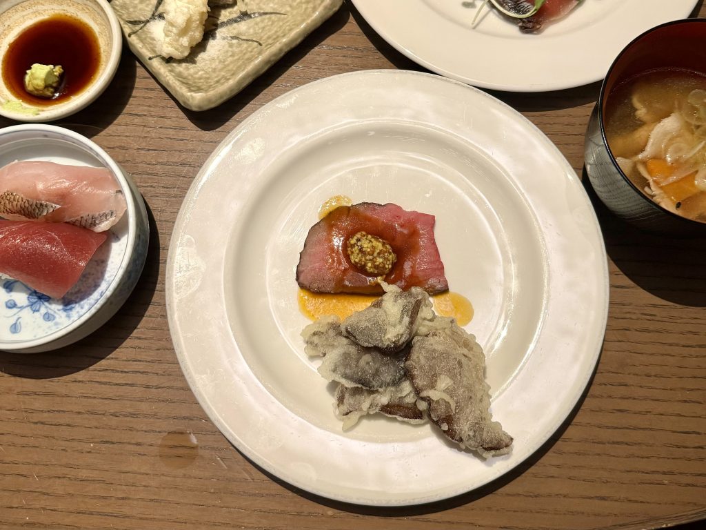 ローストビーフと天ぷら、海鮮寿司は漏れなくいただきます😋