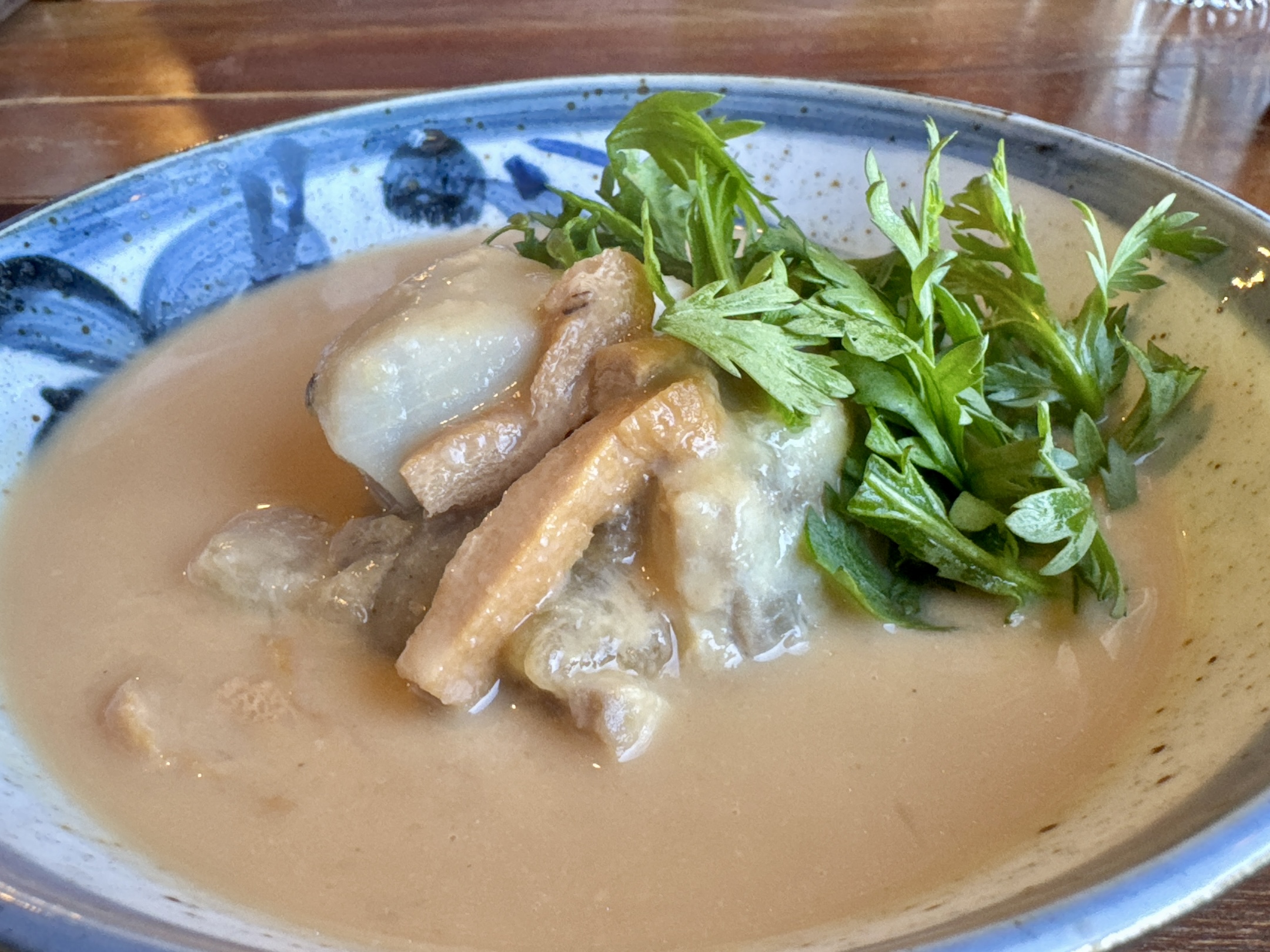 㠀舎でいただいた粕汁には寒ブリと旬のお野菜がたくさん入っていました。